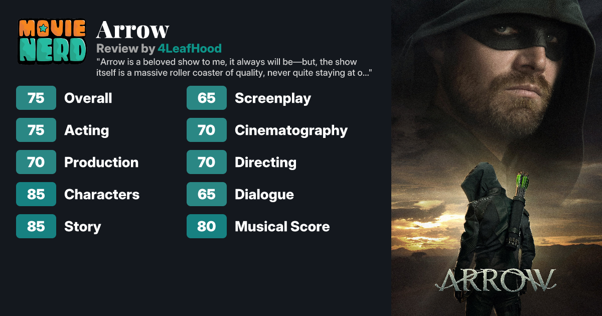 Arrow is a beloved show to me, it always will be—but, the show itself is a massive roller coaster of quality, never quite staying at one level of quality for long. However, with genre-defining peaks and an exceptional capacity to redeem itself, it earns its place as a very solid superhero show.