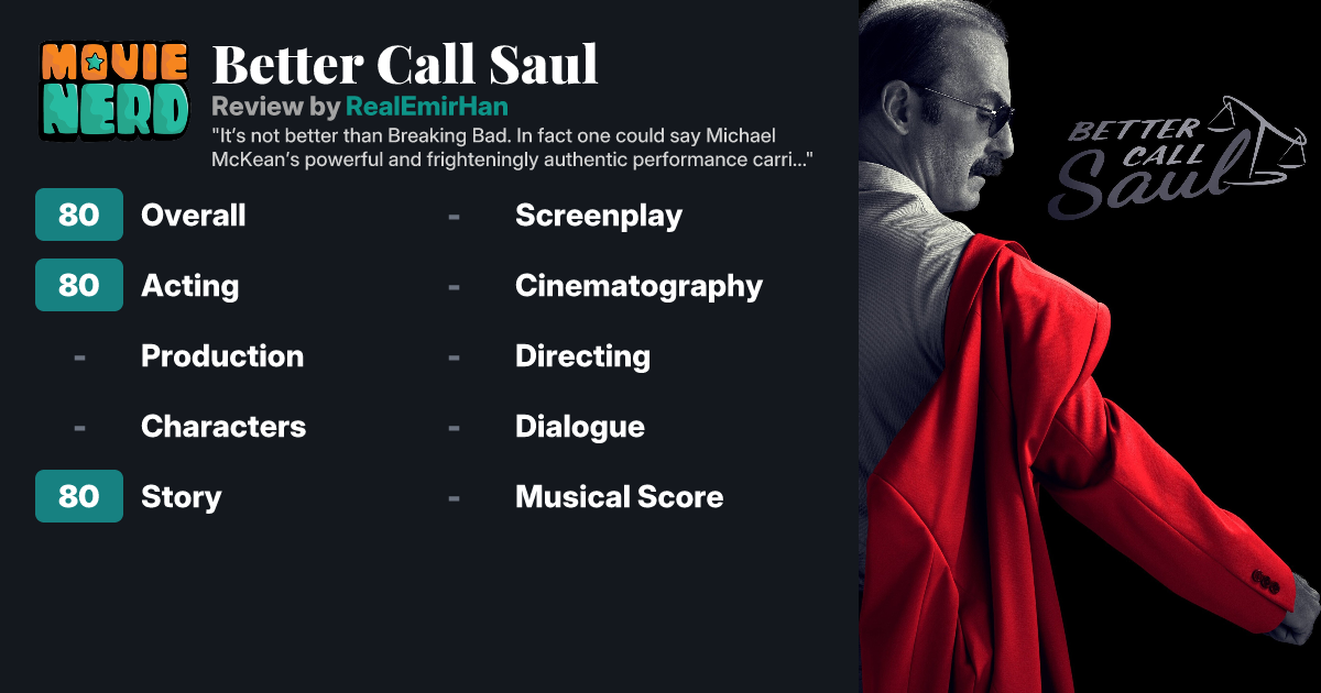 It’s not better than Breaking Bad. In fact one could say Michael McKean’s powerful and frighteningly authentic performance carried the show in its tense presence. Yet it had its charm thanks also to Bob Odenkirk. But the ending could have been much better.